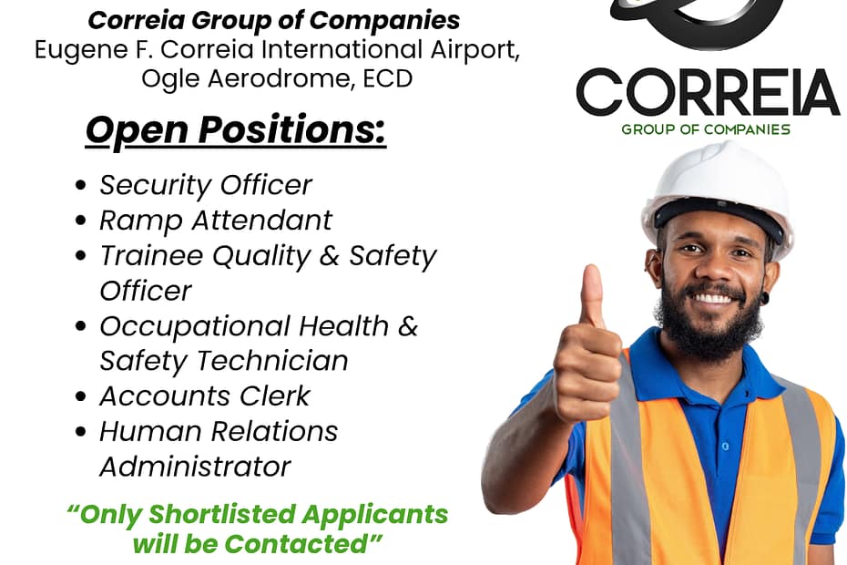 Looking for an exciting career opportunity? The Correia Group of Companies is now hiring at Eugene F. Correia International Airport, Ogle Aerodrome. We are seeking motivated, responsible, and career-driven individuals to fill the following positions:…