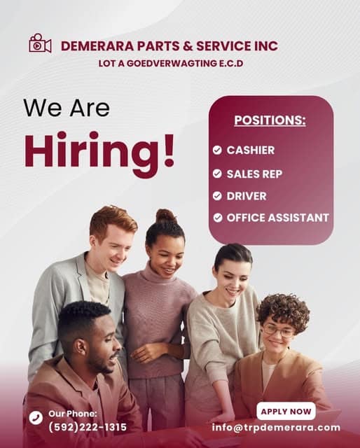 Don’t miss this opportunity to join Demerara Parts & Service Inc. Apply now and start your career with us today!