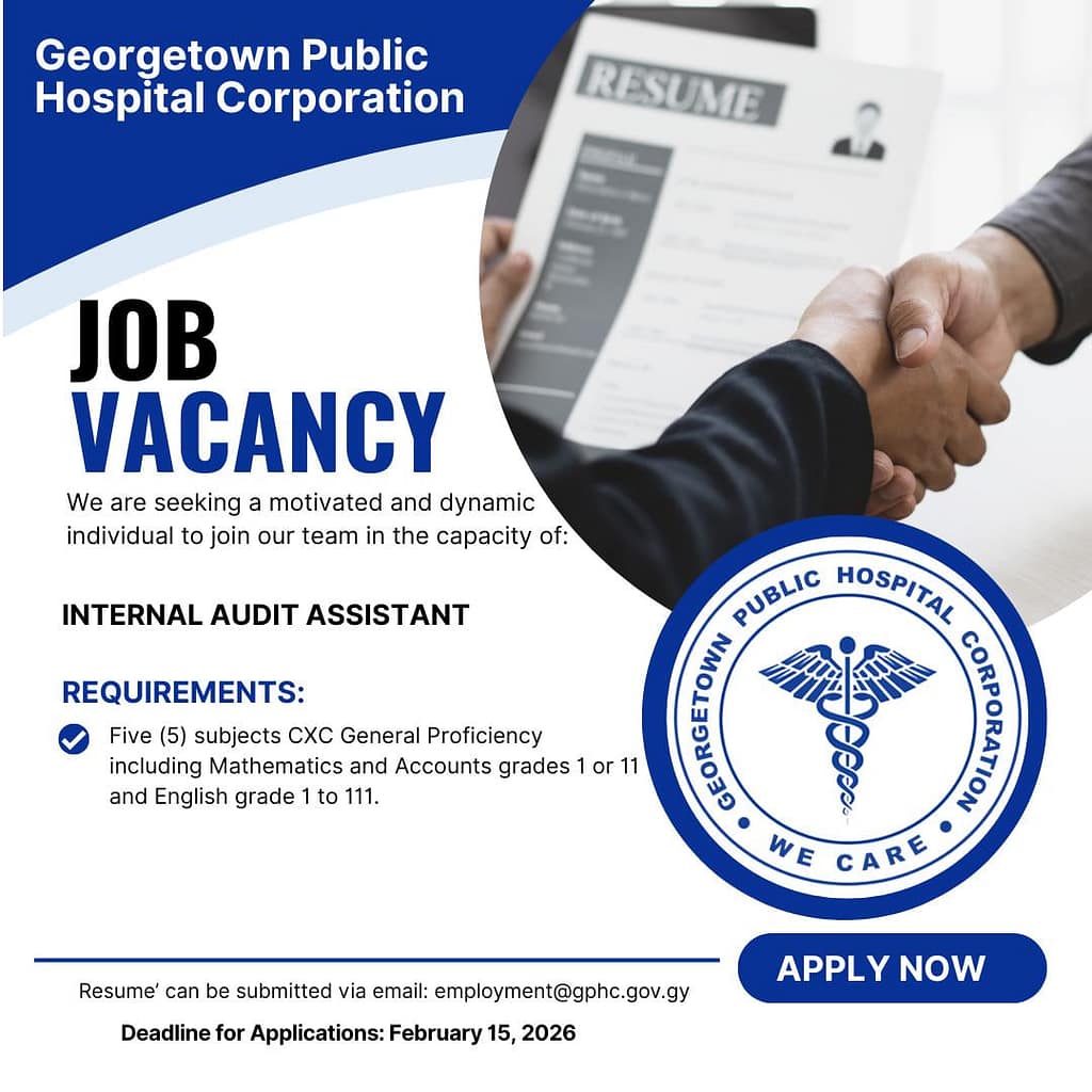 Georgetown Public Hospital Corporation is seeking a motivated and dynamic individual to join our Internal Audit team. This is an excellent opportunity to build your career in auditing within one of Guyana’s most important healthcare institutions.