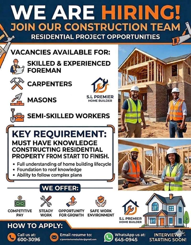 Join our construction team for residential project opportunities. We are seeking skilled and experienced individuals to work on residential properties from start to finish.