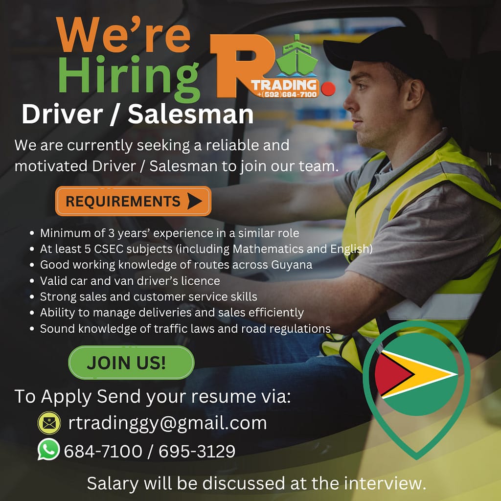 We are currently seeking a reliable and motivated Driver / Salesman to join our team.