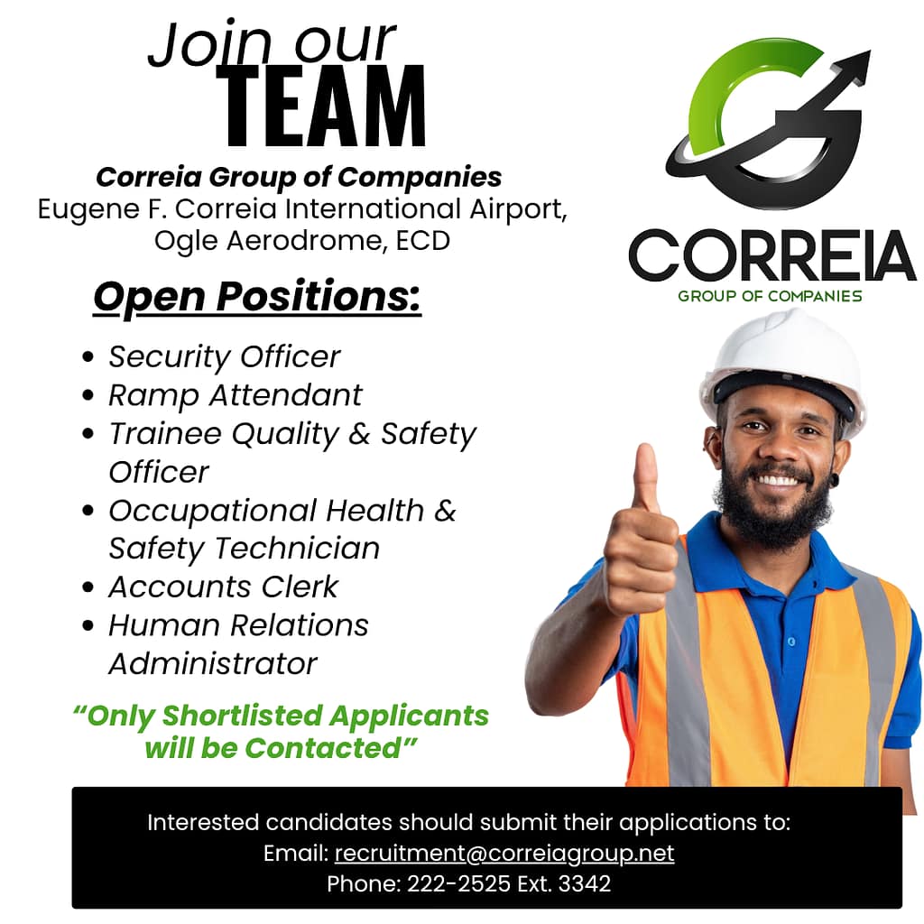 Looking for an exciting career opportunity? The Correia Group of Companies is now hiring at Eugene F. Correia International Airport, Ogle Aerodrome.