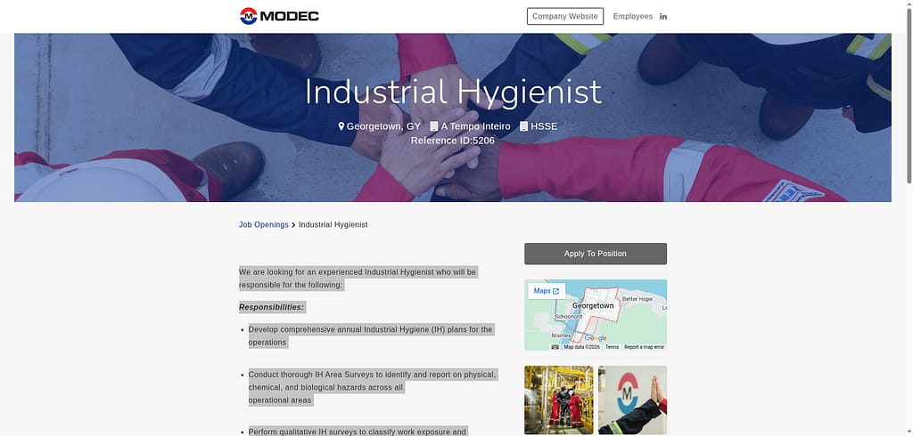 Apply online at modec-gy.us.careers.hr/p/8563de3d01b244b38e5b7c7fbeb4abec-industrial-hygienist