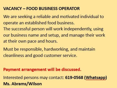 - Operate the food business independently on a day-to-day basis