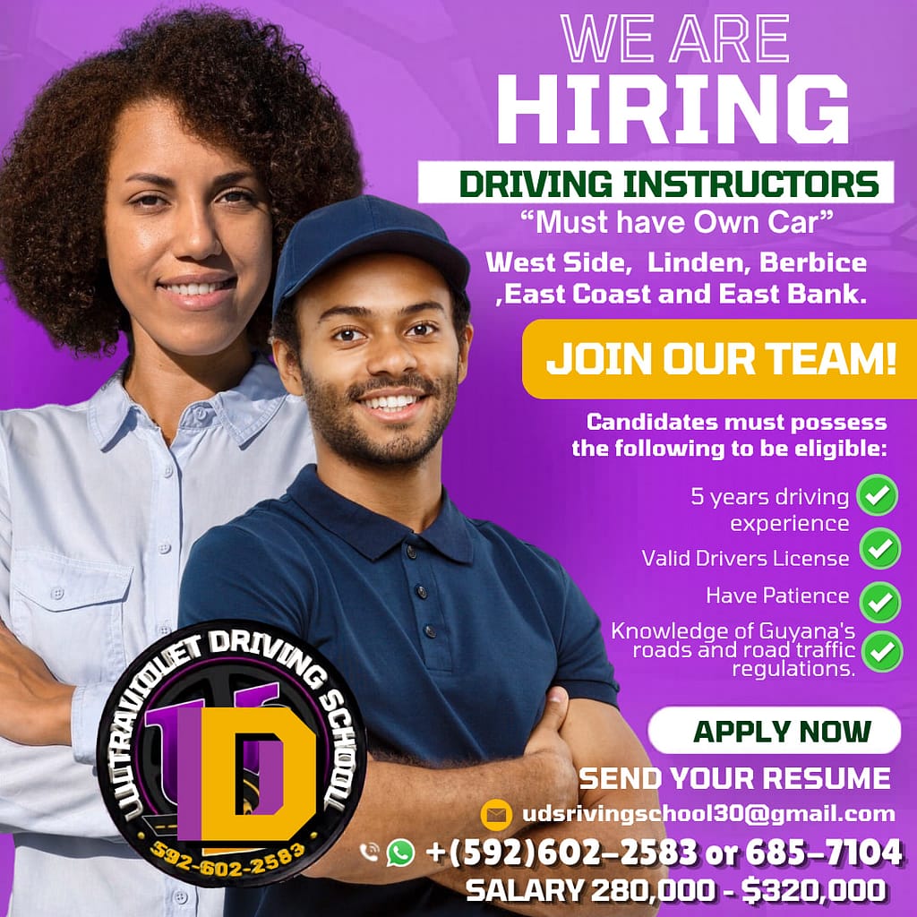 We are currently looking for experienced and patient Driving Instructors to work across West Side, Linden, Berbice, East Coast, and East Bank.